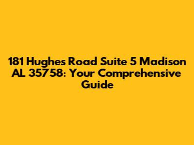 Hey guys! Are you trying to find 181 Hughes Road, Suite 5, Madison, AL 35758? You've landed in the right spot! This guide will give you all the details you need about this location. Whether you're planning a visit, sending mail, or just curious about what's there, we've got you covered. We'll dive deep into what makes this address tick, providing insights and info to make your life easier. So, let's get started and explore everything about 181 Hughes Road Suite 5! This location is not just an address; it’s a hub of activity, a place of business, and a point of contact. Understanding its significance can be incredibly helpful, whether you're a local resident, a business professional, or someone just passing through. We'll explore the types of businesses or services you might find here, the general atmosphere of the area, and any unique aspects that make this spot stand out. Stick with us, and you’ll become an expert on all things related to 181 Hughes Road Suite 5, Madison, AL 35758!