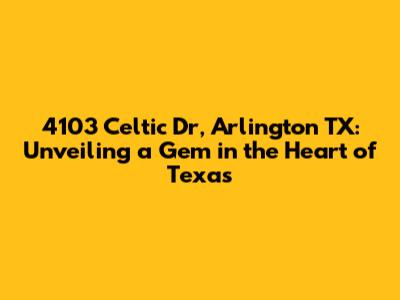 Hey guys! Ever stumbled upon an address that just sounds like home? Well, 4103 Celtic Dr in Arlington, Texas, might just be that place for you. Nestled in a vibrant and thriving community, this address isn't just a location; it's a gateway to a lifestyle. Whether you're a first-time homebuyer, a seasoned investor, or simply curious about the real estate landscape in Arlington, buckle up! We're about to dive deep into what makes 4103 Celtic Dr so special.