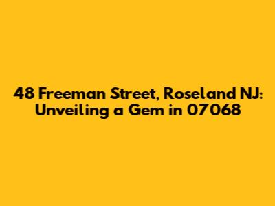 Hey guys! Let's dive into the charming world of real estate, specifically focusing on a property that's caught the eye: 48 Freeman Street, Roseland, NJ 07068. This isn't just a house; it's a potential home, a place to build memories, and an investment in your future. We'll explore everything from its location and potential value to what makes this address a desirable one. Get ready for a deep dive that'll help you understand why 48 Freeman Street might just be the perfect place for you!