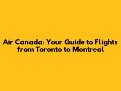 Air Canada Flight Schedules: Toronto to Montreal