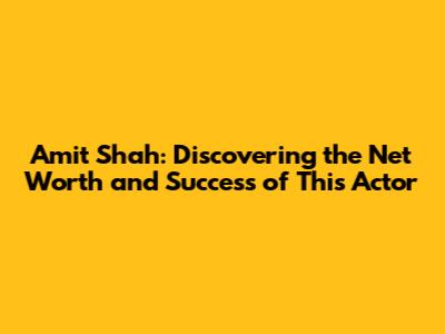 Amit Shah: Discovering The Net Worth And Success Of This Actor