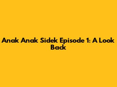 Anak Anak Sidek Episode 1: A Look Back