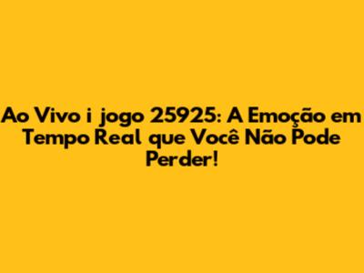 Ao Vivo I Jogo 25925: A Emoção Em Tempo Real