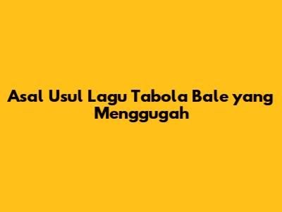 Asal Usul Lagu Tabola Bale Yang Menggugah