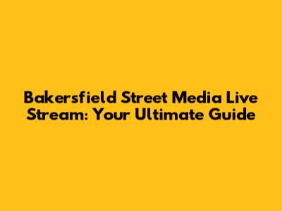 Bakersfield Street Media Live Stream: Your Ultimate Guide