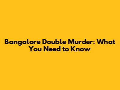 Bangalore Double Murder: What You Need To Know