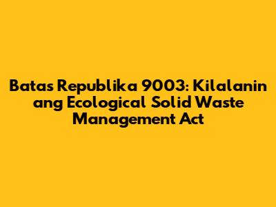 Ano ba ang Batas Republika 9003 at Bakit Ito Mahalaga?