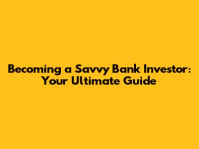 Becoming A Savvy Bank Investor: Your Ultimate Guide