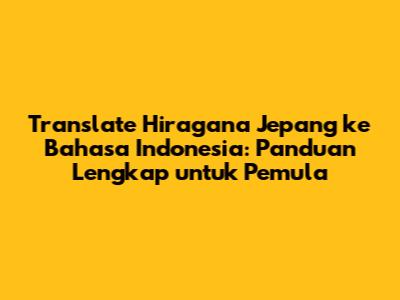 Belajar Mudah: Translate Hiragana Jepang Ke Bahasa Indonesia