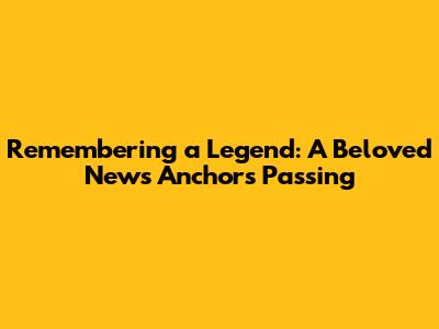 Beloved News Anchor Passes Away: Remembering Their Legacy