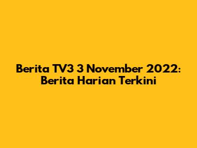 Berita TV3 3 November 2022: Berita Harian Terkini