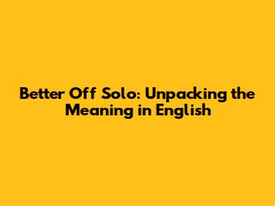 Better Off Solo: Unpacking The Meaning In English