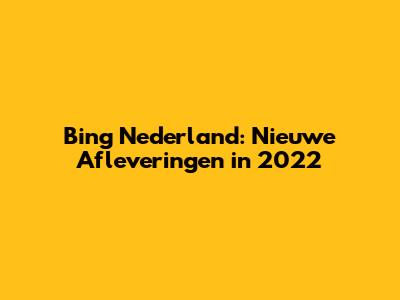 Bing Nederland: Nieuwe Afleveringen In 2022