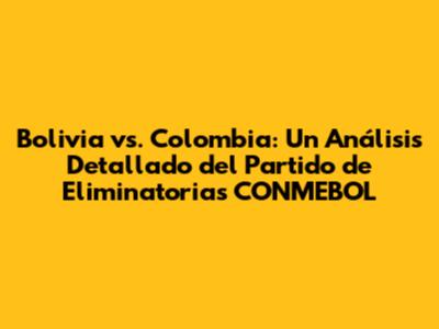 Bolivia Vs. Colombia: Análisis Del Partido Eliminatorias CONMEBOL