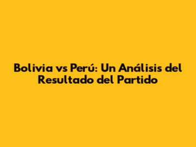 Bolivia Vs Perú: Un Análisis Del Resultado Del Partido