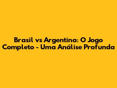 Brasil Vs Argentina: O Jogo Completo