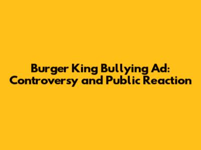 Burger King Bullying Ad: Controversy And Public Reaction