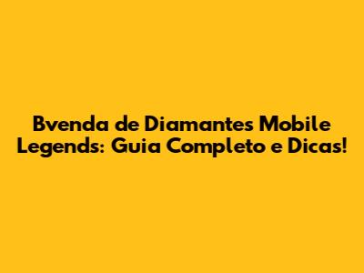 Bvenda De Diamantes Mobile Legends: Guia Completo E Dicas!