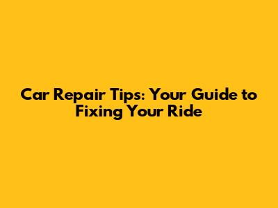Car Repair Tips: Your Guide To Fixing Your Ride