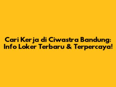 Guys, lagi pada nyari kerja di daerah Ciwastra, Bandung? Wah, pas banget nih! Artikel ini bakal kasih info lengkap seputar lowongan kerja (loker) terbaru dan terpercaya di Ciwastra dan sekitarnya. Kita bahas tuntas mulai dari cara cari loker yang oke, jenis pekerjaan yang lagi banyak dicari, sampai tips ampuh biar lamaran kalian dilirik HRD. Jadi, jangan kemana-mana ya, simak terus sampai habis!