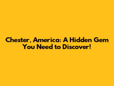 Chester, America: A Hidden Gem You Need To Discover!