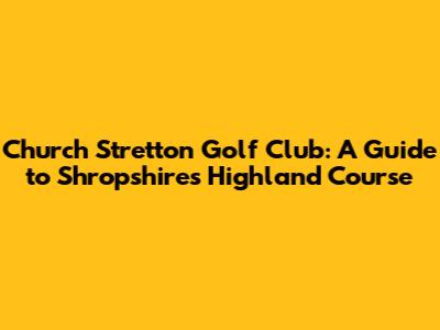 Church Stretton Golf Club: A Guide To Shropshire's Highland Course