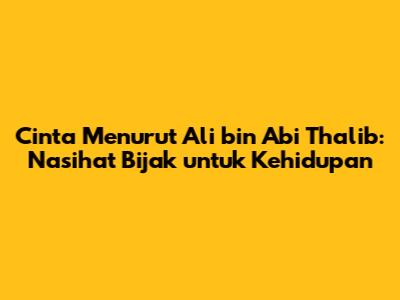 Kata-kata bijak ini adalah panduan yang tak ternilai harganya untuk membangun hubungan yang sehat, bahagia, dan bermakna. Mereka mengajarkan kita tentang pentingnya cinta, kejujuran, kesetiaan, dan pengorbanan. Dengan mengikuti nasihat Ali bin Abi Thalib, kita dapat menciptakan kehidupan yang penuh dengan cinta dan kebahagiaan.