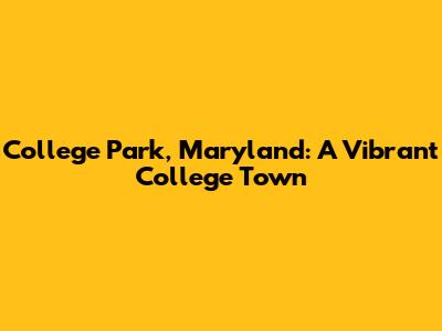 College Park, Maryland: A Vibrant College Town