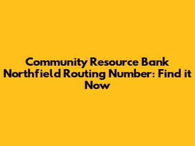 Community Resource Bank Northfield Routing Number: Find It Now
