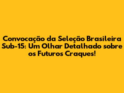 Convocação Da Seleção Brasileira Sub-15: Jovens Talentos Em Foco!