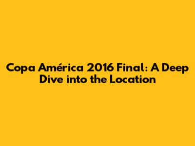 Hey guys! Let's rewind the clock and dive into the electrifying atmosphere of the Copa América 2016 final! You know, that tournament was a blast, and the final match was the cherry on top. But where exactly did this epic showdown take place? Well, buckle up, because we're about to explore the location of the Copa América 2016 final, and trust me, it's a story filled with history, excitement, and a whole lot of soccer passion. The Copa América 2016 final was more than just a game; it was a cultural event, bringing together fans from all over the Americas and beyond. The anticipation, the energy, and the sheer drama of the match were amplified by the setting. So, let's get into the details of the Copa América 2016 final location and relive those unforgettable moments. You're going to love this!