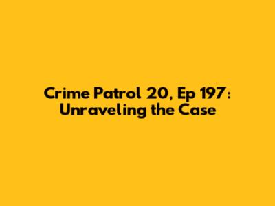 Hey guys! Get ready to dive deep into another gripping episode of Crime Patrol 20, specifically episode 197. This show, you know, it's the one that really pulls you into the gritty reality of crime investigation, and episode 197 is no exception. It’s packed with suspense, drama, and the kind of twists that make you glued to your screen. We're going to break down what makes this particular episode so compelling, from the initial crime that sets everything in motion to the meticulous police work that follows. If you're a fan of true crime stories, or just love a good mystery, stick around because we’re about to dissect episode 197 of Crime Patrol 20, giving you all the juicy details and insights you crave. We’ll explore the elements that contribute to its success, the narrative techniques employed, and why stories like these resonate so deeply with audiences. So grab your popcorn, settle in, and let’s get started on unraveling the mysteries presented in this unforgettable episode.