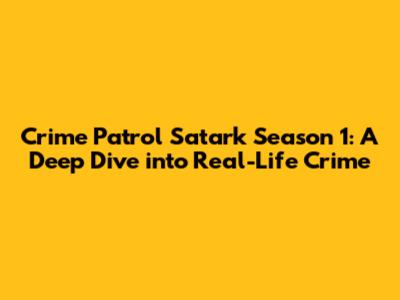 Crime Patrol Satark Season 1: Cases, Mysteries, And Thrills