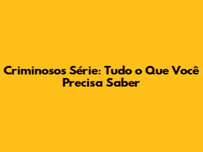 Criminosos Série: O Que Saber
