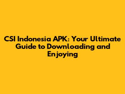 CSI Indonesia APK: Your Guide To Downloading & Enjoying