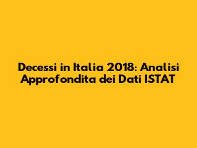 Nel 2018, l'Italia ha registrato un certo numero di decessi, e questo numero è un indicatore importante per valutare lo stato di salute della popolazione. I dati ISTAT ci mostrano quali sono state le principali cause di morte, quali malattie hanno avuto un impatto maggiore e come queste variazioni si sono distribuite sul territorio nazionale. Un'analisi accurata di questi dati è essenziale per i decisori politici, i professionisti della sanità e i ricercatori, poiché permette di sviluppare strategie più efficaci per la prevenzione delle malattie, la promozione della salute e la gestione delle risorse sanitarie.