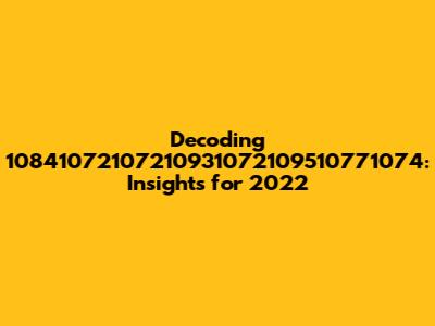 Decoding 10841072107210931072109510771074: Insights For 2022