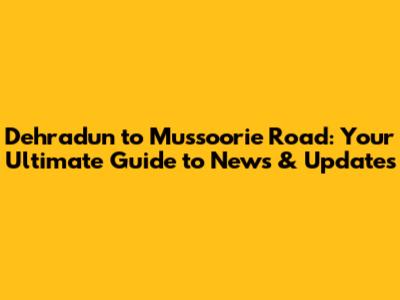 Dehradun To Mussoorie Road: Latest News & Updates