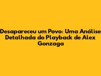 Desapareceu Um Povo: A Análise Profunda Do Playback De Alex Gonzaga