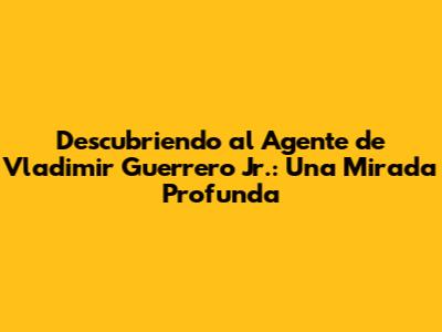 El Agente de Vladimir Guerrero Jr.: ¿Quién Es?