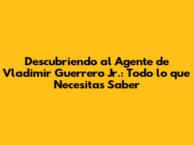 隆Hola, fan谩ticos del b茅isbol! Si son como yo, siempre est谩n al tanto de todo lo relacionado con el mundo del diamante. Y, por supuesto, no podemos hablar de b茅isbol sin mencionar a uno de los grandes: Vladimir Guerrero Jr. Este tipo es una bestia en el plato, y su nombre es sin贸nimo de poder y talento. Pero, 驴alguna vez se han preguntado qui茅n est谩 detr谩s de escena, guiando la carrera de este superestrella? Exacto, estamos hablando del agente de Vladimir Guerrero Jr. En este art铆culo, vamos a sumergirnos en el mundo de los agentes deportivos y descubrir todo lo que necesitan saber sobre la persona que representa a Vladdy. Prep谩rense para una inmersi贸n profunda en el mundo de los agentes, los contratos y el camino hacia la grandeza de este incre铆ble jugador.