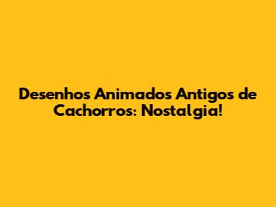 Desenhos Animados Antigos De Cachorros: Nostalgia!
