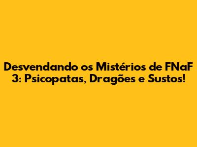 Olá, pessoal! Se você é fã de Five Nights at Freddy's (FNaF), com certeza já se aventurou pelos corredores assustadores de FNaF 3. Mas, vocês já pararam para pensar nas camadas mais profundas desse jogo? Não estamos falando só dos jumpscares e dos animatrônicos sinistros, mas sim nas teorias, nos personagens e nos easter eggs que tornam FNaF 3 tão fascinante. Hoje, vamos mergulhar de cabeça nesse universo, explorando as nuances dos psicopatas, dos dragões (sim, dragões!), e de tudo que faz esse jogo ser tão especial. Preparem-se para desvendar os segredos de FNaF 3!