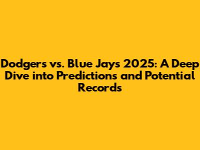 Hey baseball fans! Are you guys ready to dive deep into the potential matchup between the Los Angeles Dodgers and the Toronto Blue Jays in the 2025 season? This is going to be fun! We're going to break down everything from the potential records of these teams to the players who could make a massive impact. Let's get started. Get ready to explore the exciting possibilities of this highly anticipated series! This article will serve as your ultimate guide, filled with expert analysis, bold predictions, and everything you need to know about the Dodgers and Blue Jays as they gear up for the 2025 season. Let's start with a look at what makes this matchup so compelling and why fans everywhere are already buzzing with excitement. We will analyze the strengths and weaknesses of each team, examine key players, and predict the potential outcomes of their games. So, buckle up, grab your peanuts and cracker jacks, and prepare for an exciting ride through the upcoming baseball season. Get ready to explore the exciting possibilities of this highly anticipated series! This article will serve as your ultimate guide, filled with expert analysis, bold predictions, and everything you need to know about the Dodgers and Blue Jays as they gear up for the 2025 season.