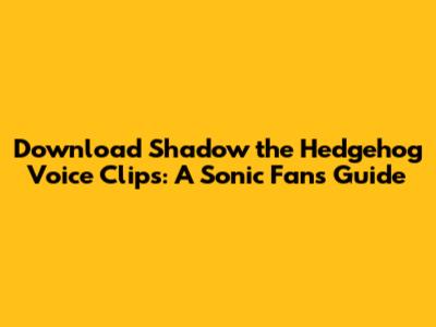 Download Shadow The Hedgehog Voice Clips: A Sonic Fan's Guide
