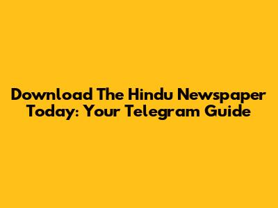 Download The Hindu Newspaper Today: Telegram Edition