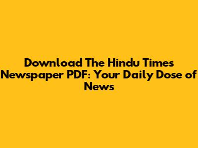 Download The Hindu Times Newspaper PDF: Your Daily Dose Of News