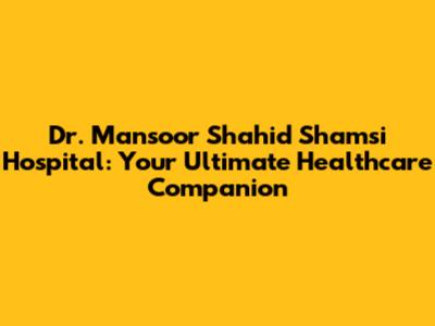 Dr. Mansoor Shahid Shamsi Hospital: Comprehensive Healthcare Guide