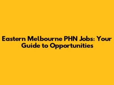 Eastern Melbourne PHN Jobs: Your Guide To Opportunities