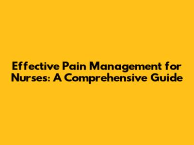 Effective Pain Management For Nurses: A Comprehensive Guide